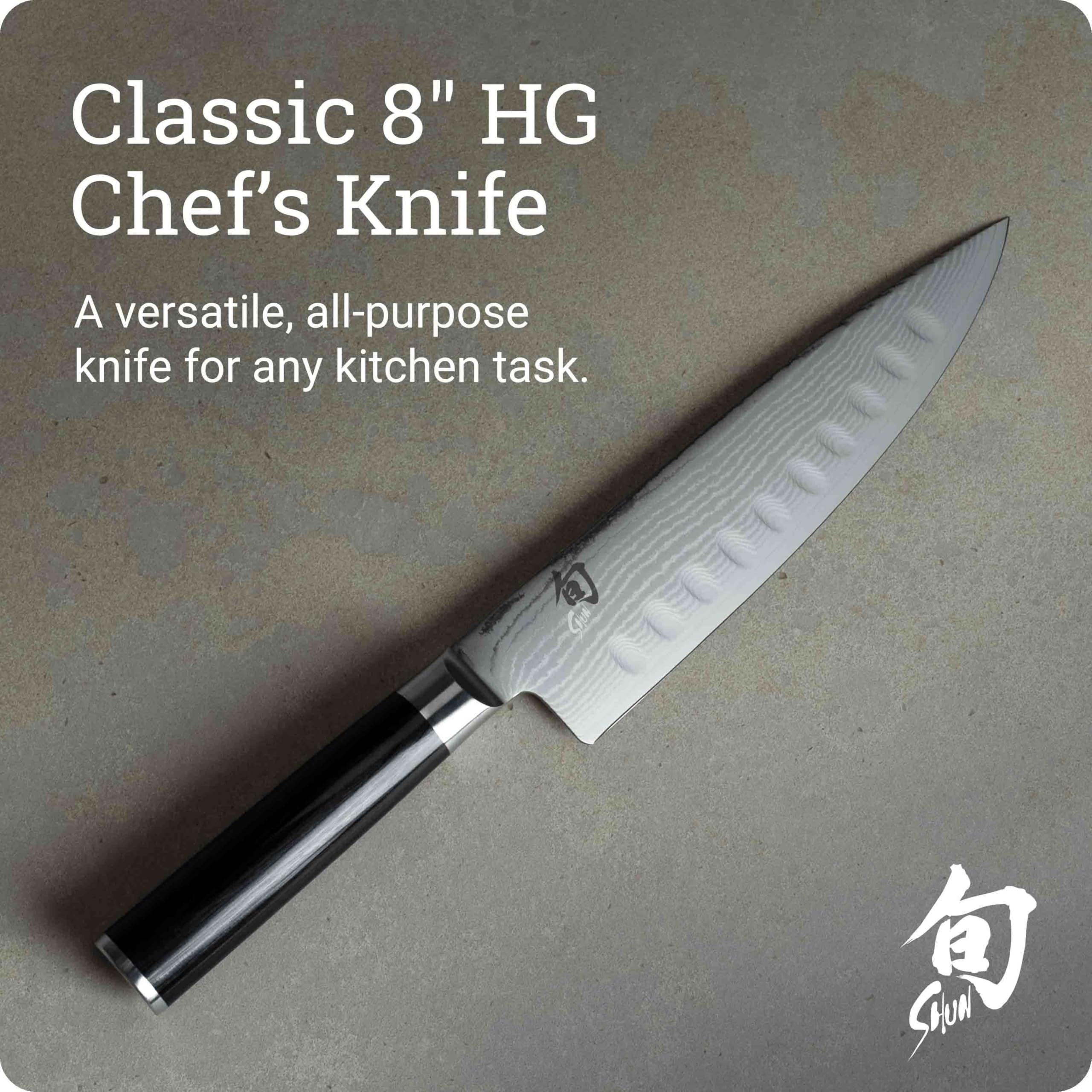 - JAPANESE CHEF KNIFE: The Shun Classic 8-inch Hollow Ground Chef's Knife is expertly designed for a variety of kitchen tasks, from slicing and dicing to mincing, making it an indispensable tool for any cook.