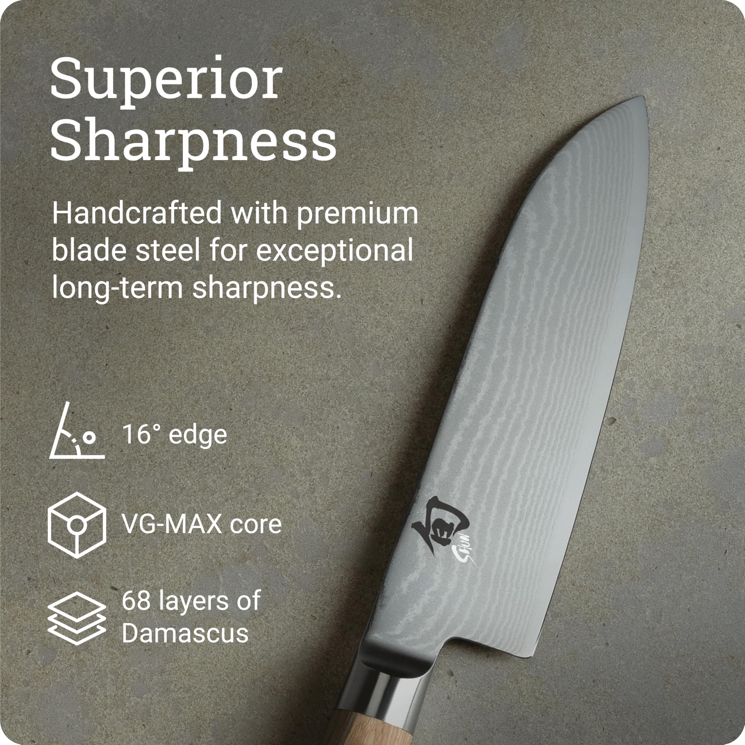 Shun Classic Blonde 7" Santoku Knife, Handcrafted Japanese All Purpose Knife, VG-MAX Core with Damascus Stainless Steel Cladding, Pakkawood Handle, Versatile Japanese Cutting Tool