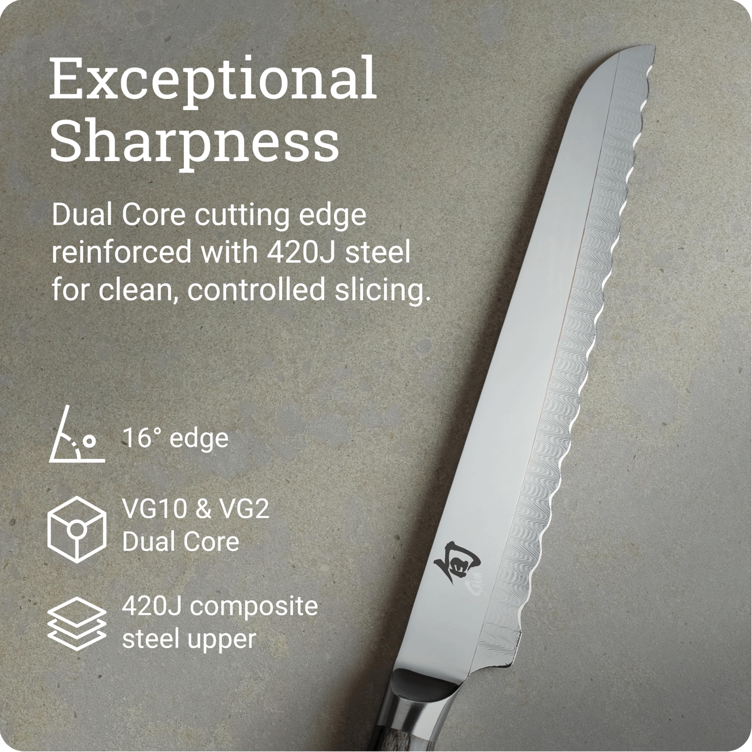 - SERRATED BREAD KNIFE: The Shun 9-inch Kagerou Bread Knife glides through bread with ease, slicing tender and crusty breads alike with no ripping, squashing or tearing. It's also ideal for cakes and pastries.