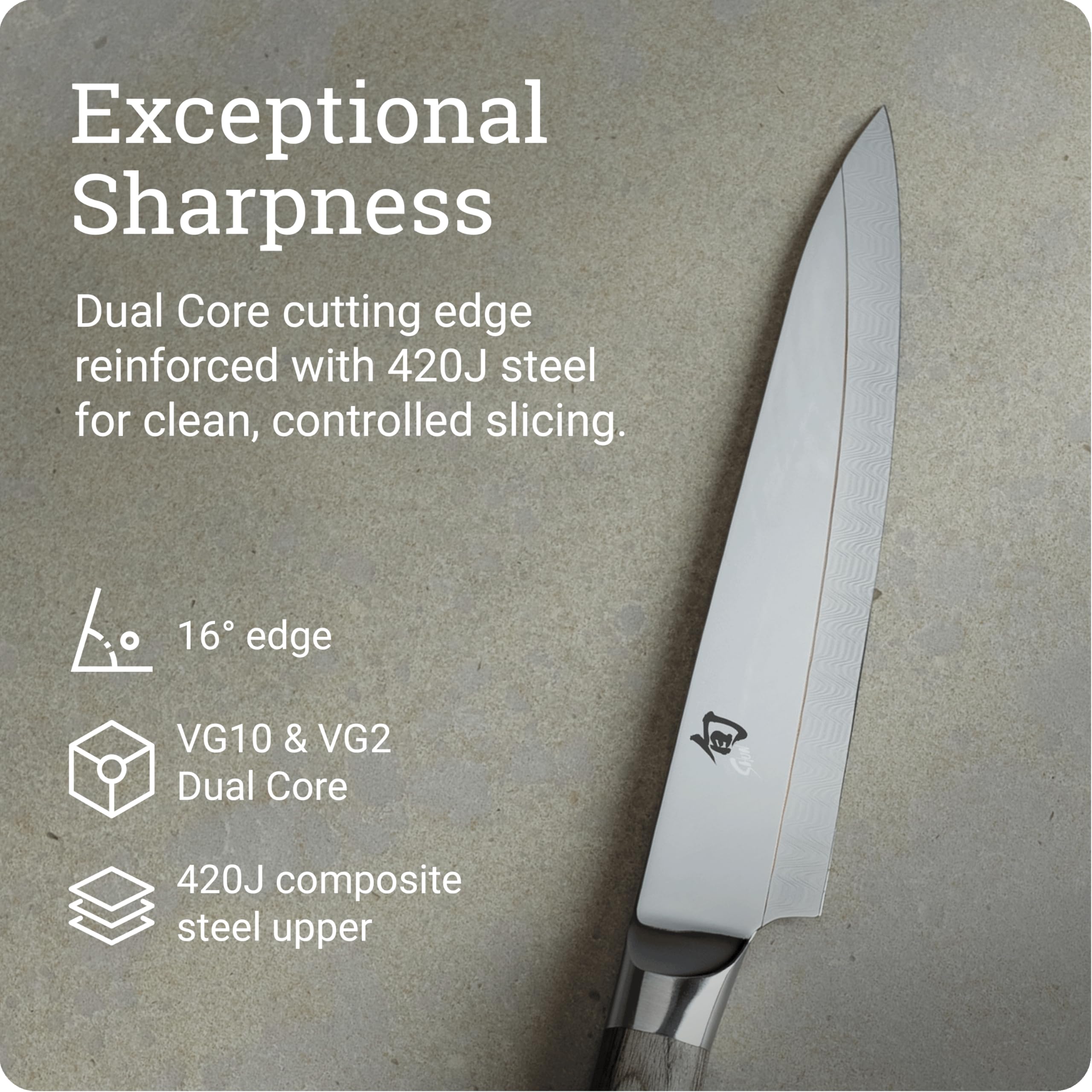 - HIGH-PERFORMANCE CONSTRUCTION: All components are performance driven. The series features an ultra sharp cutting edge of forged Dual Core Damascus steel, 71 layers of high-carbon, VG10 & VG2, married to a beautifully polished stainless steel upper using Shun's proprietary Composite Blade Technology.
