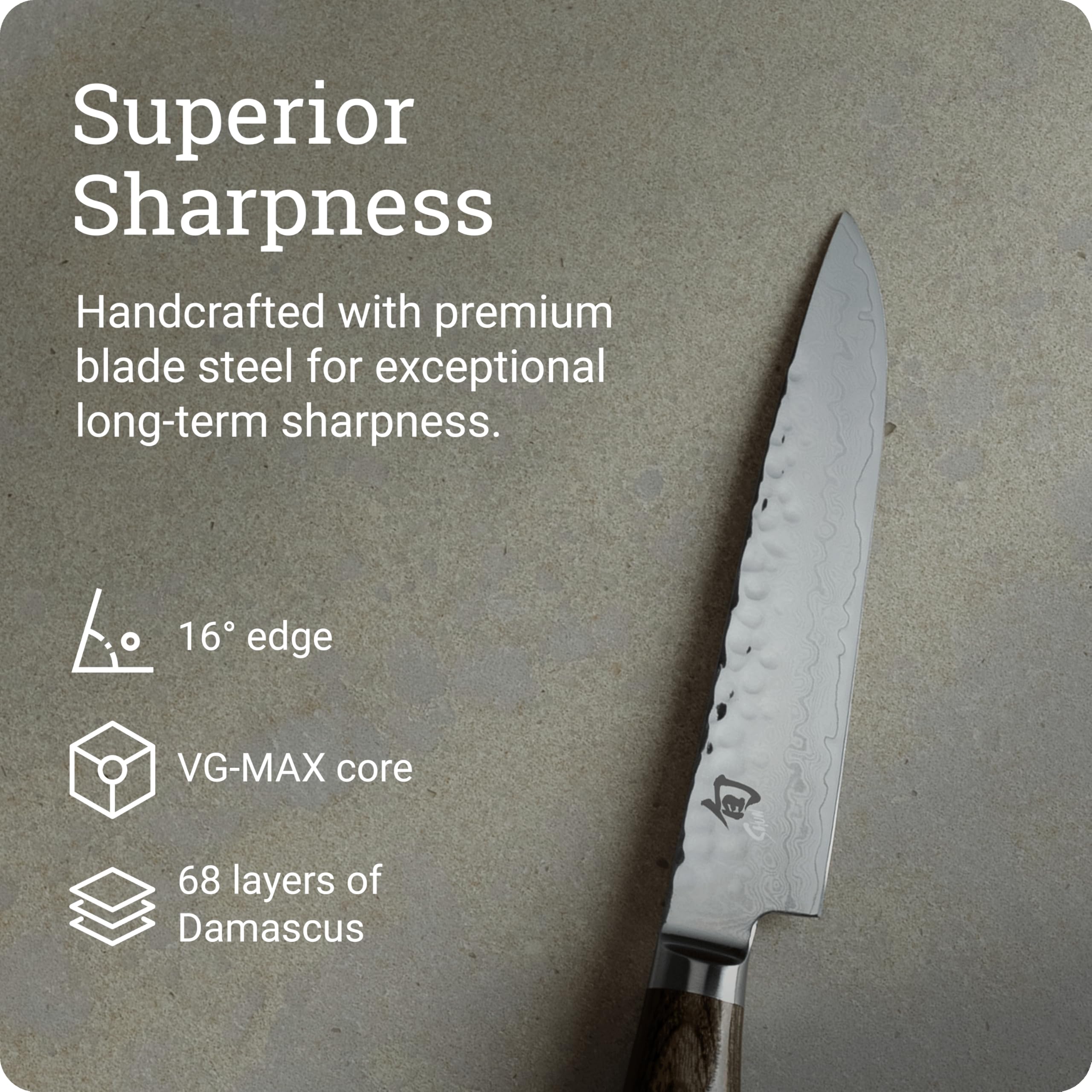 - JAPANESE CRAFTSMANSHIP: Each Shun knife is meticulously handcrafted in Japan, reflecting a legacy of traditional knife-making expertise and a dedication to superior quality. Supported by free sharpening and honing.