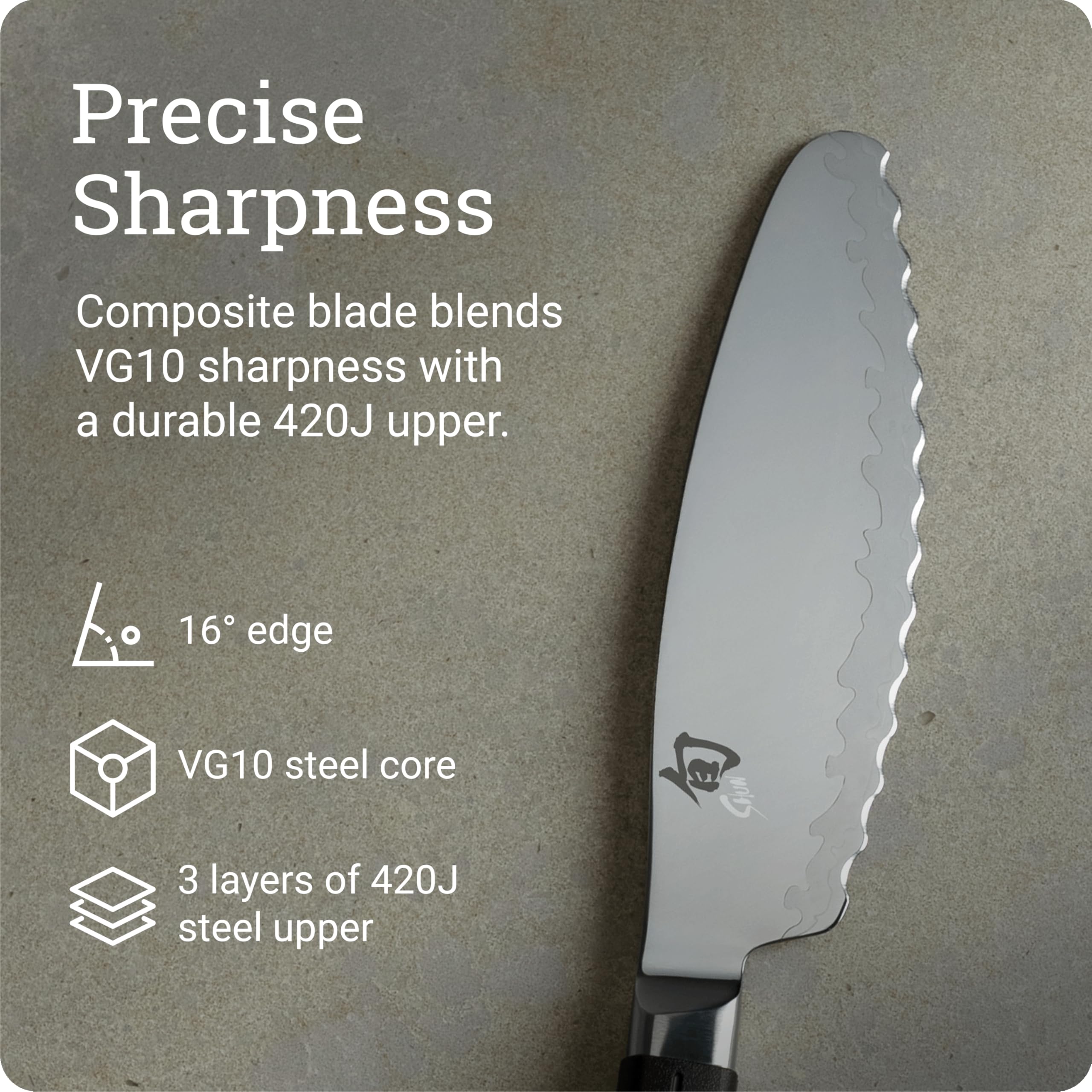 - PRECISE SHARPNESS: San Mai edge construction features VG10 steel supported by a 420J stainless steel blade upper for razor-sharp precision with a 16-degree edge.