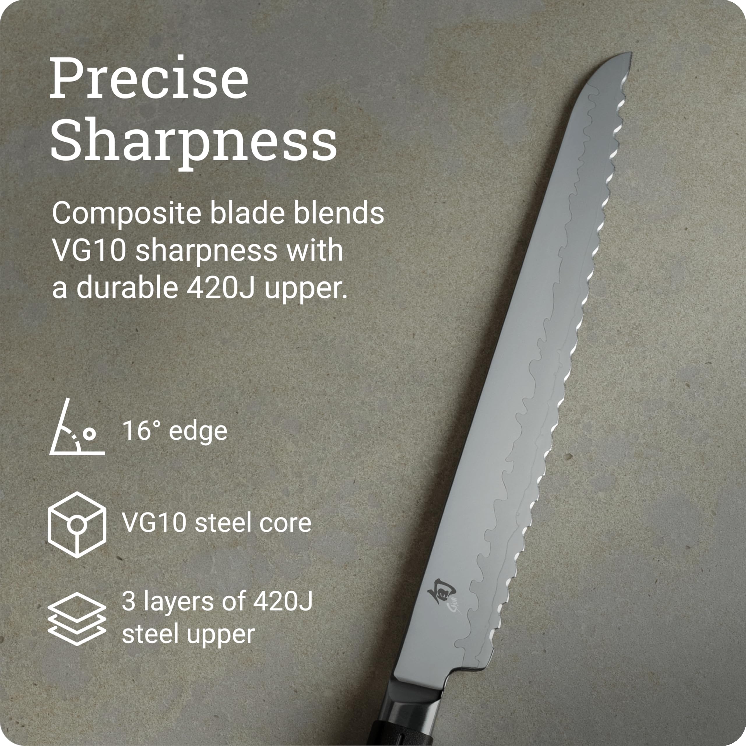 - PRECISE SHARPNESS: San Mai edge construction features VG10 steel supported by a 420J stainless steel blade upper for razor-sharp precision with a 16-degree edge.